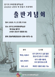 (플러스인뉴스) 경기도교육청평생학습관이 ‘2025년 나만의 책 만들기 프로젝트’ 출판기념회를 개최한다. 27일 경기도교육청평생학습관 1층 윤슬갤러리에서 열리는 출판기념회는 지난 4월부터 11월까지 ‘나만의 책 만들기 프로젝트’를 통해 진행된 글쓰기 교육, 원고 집필, 온라인 첨삭, 책 출판의 전 과정을 마무리하는 행사다. 출판기념회에서는 학생·성인 등 29명의 시민작가가 직접 집필·출판한 3권의 책을 공개하고 작가와 지역주민이 함께 창작의 성취를 나누는 자리로 마련된다. 출판기념회는 ▲출판 도서 3종 소개 ▲참여 작가 29인 소개 ▲참여 작가의 출판 소감 발표 ▲출판 도서 전달 ▲기념 촬영 및 전시장 관람으로 진행된다. 또한 전시장에는 출판 도서(3종)와 작가 추천 도서가 함께 전시된다. 경기도교육청평생학습관은 경기교육의 예술·체험교육 확대 정책에 따라 지역사회와 함께하는 창작·출판 생태계 조성을 위해 노력하고 있다. 류영신 경기도교육청평생학습관장은 “한 사람의 이야기가 한 권의 책이 되어 지역사회와 공유되는 과정은 학습자의 자아실현과 독서문화 확산에 큰 의미가 있다”며 “앞으로도 열린