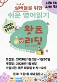 (플러스인뉴스) 수원시 장안구 조원1동 새마을문고는 1월 6일부터 27일까지 실버들을 위한 쉬운 영어읽기 ‘왓츠리딩’ 프로그램을 추진한다 지역 어르신들의 활기찬 노년 생활에 도움을 드리고자 추진하는 이번 ‘왓츠리딩’은 쉽고 재미있는 영어 읽기 프로그램으로, 매주 화요일 11시부터 12시까지 1시간 동안 수업을 진행한다 이윤미 조원1동 새마을문고 회장은 “이런 프로그램을 통하여 어르신들도 문고를 보다 친근하고 쉽게 이용하실 수 있는 계기가 되기를 바란다”고 말했다. 윤현섭 조원1동장은 “새마을문고의 이런 프로그램을 통해 지역 어르신들의 활기차고 건강한 노년 생활에 문고의 좋은 역할을 기대한다”고 전했다. [뉴스출처 : 경기도 수원시]